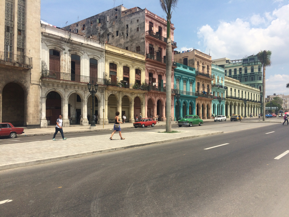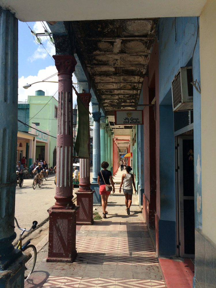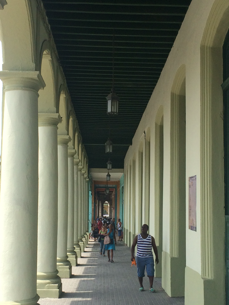 Les hautes arcades de Cuba nous rappelent celles de Bologna. Elles s'enchainent et créées des perspectives profondes et colorées. Elles forment un ensemble homogène tout en étant des séries de différences: les poteaux, couleurs, natures des sols, hauteurs des sols, changent devant chaque bâtiment.